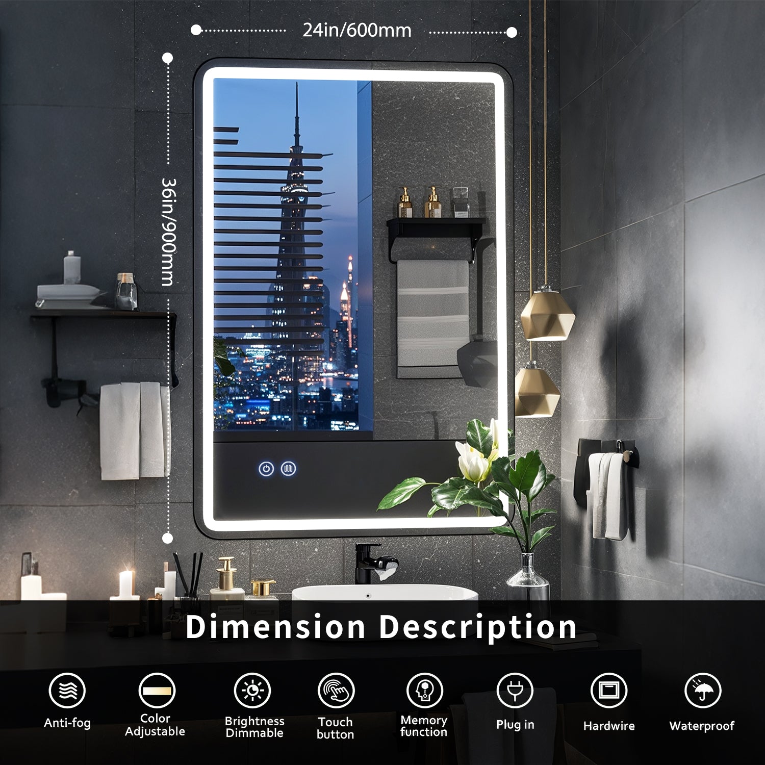 FIESONO 24x36 inch Frameless Rounded Corner LED Bathroom Vanity Mirror