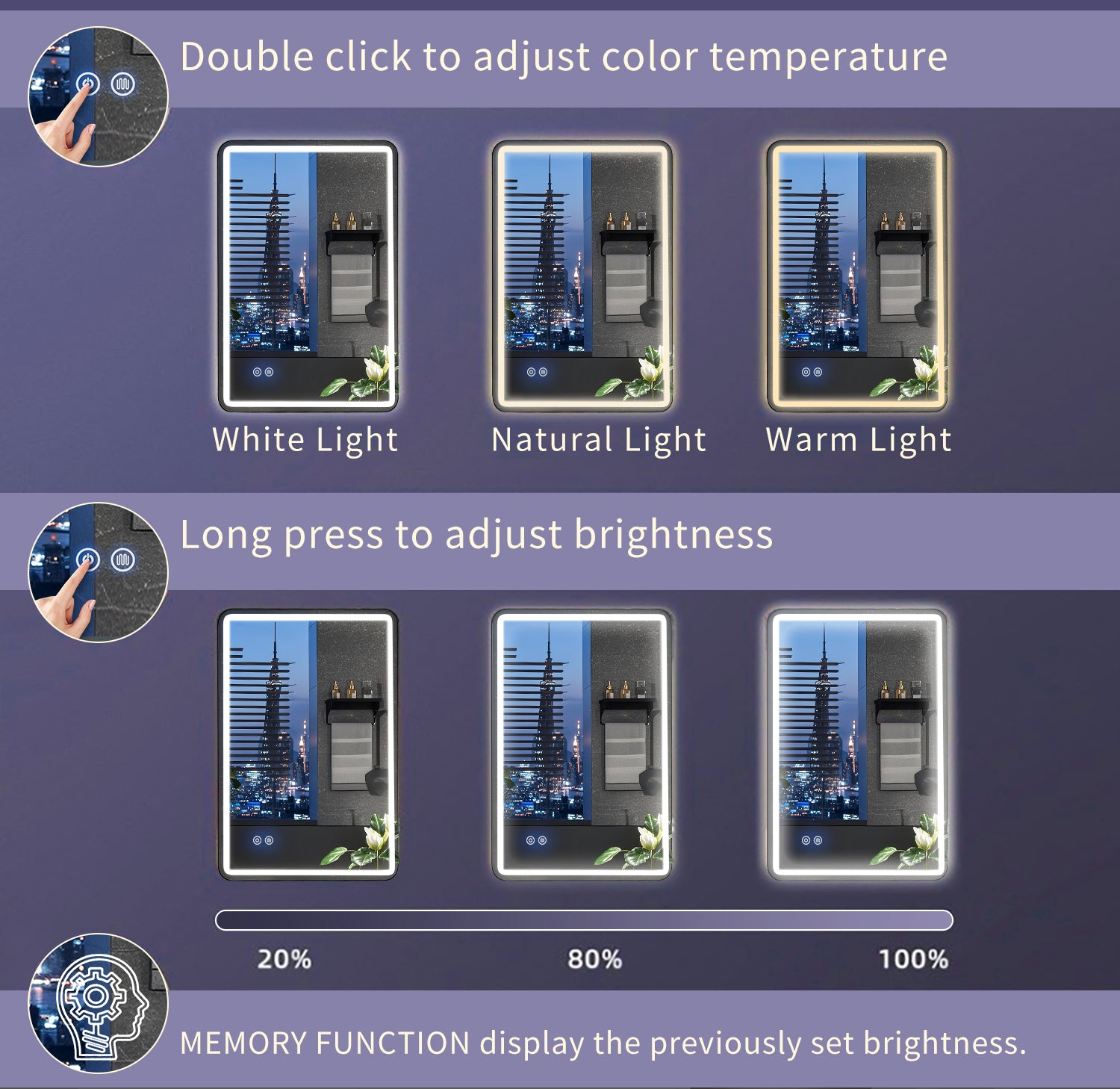 4、Anti-Fog Technology: Featuring innovative anti-fog capabilities, this bathroom vanity mirror offers a crystal-clear view at all times, allowing you to enjoy a fog-free reflection even in steamy environments.