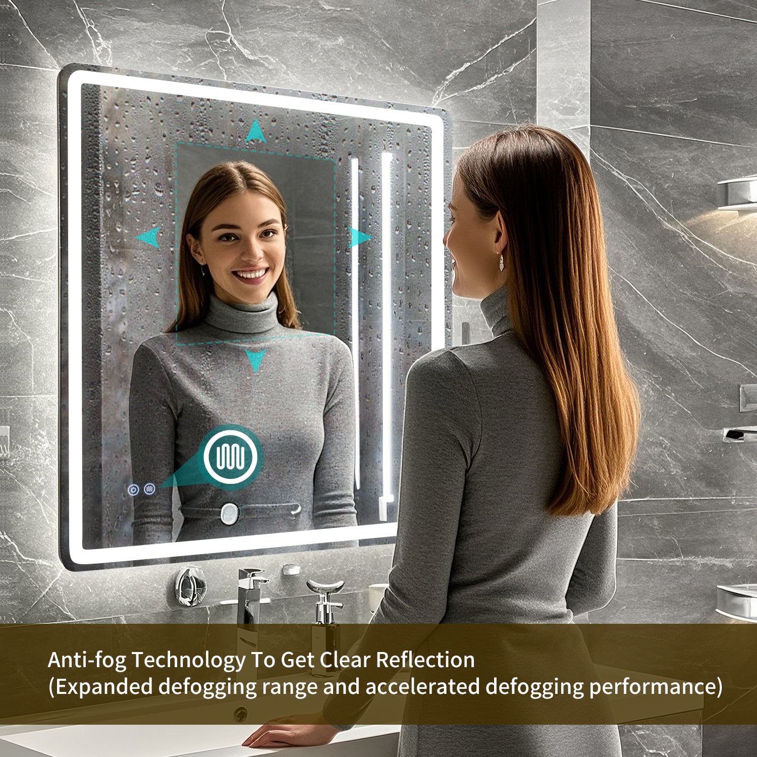 4、Anti-Fog Technology: Featuring innovative anti-fog capabilities, this bathroom vanity mirror offers a crystal-clear view at all times, allowing you to enjoy a fog-free reflection even in steamy environments.